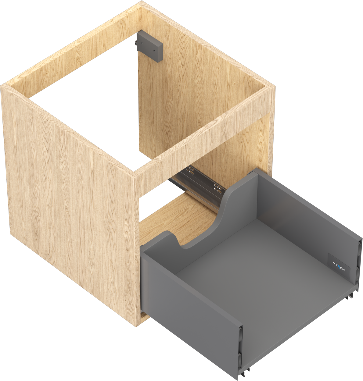Il ritaglio nel cassetto è progettato in modo da ospitare il sifone, che è necessario nelle installazioni dei lavandini. Grazie a ciò, il mobile può essere montato in modo completamente funzionale, senza dover rinunciare allo spazio nel cassetto a favore dell'installazione.