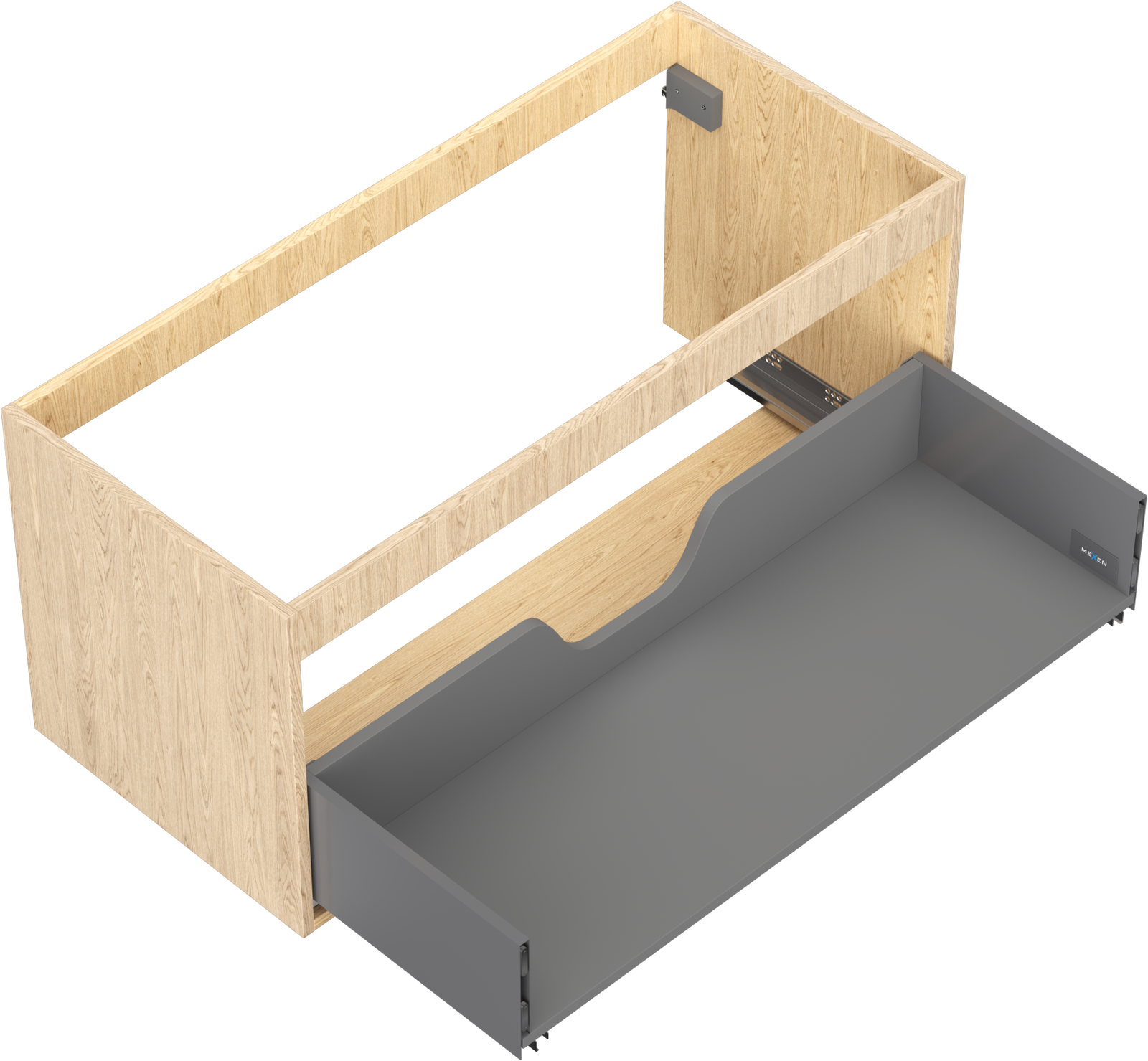 Il ritaglio nel cassetto è progettato in modo da ospitare il sifone, che è necessario nelle installazioni dei lavandini. Grazie a ciò, il mobile può essere montato in modo completamente funzionale, senza dover rinunciare allo spazio nel cassetto a favore dell'installazione.
