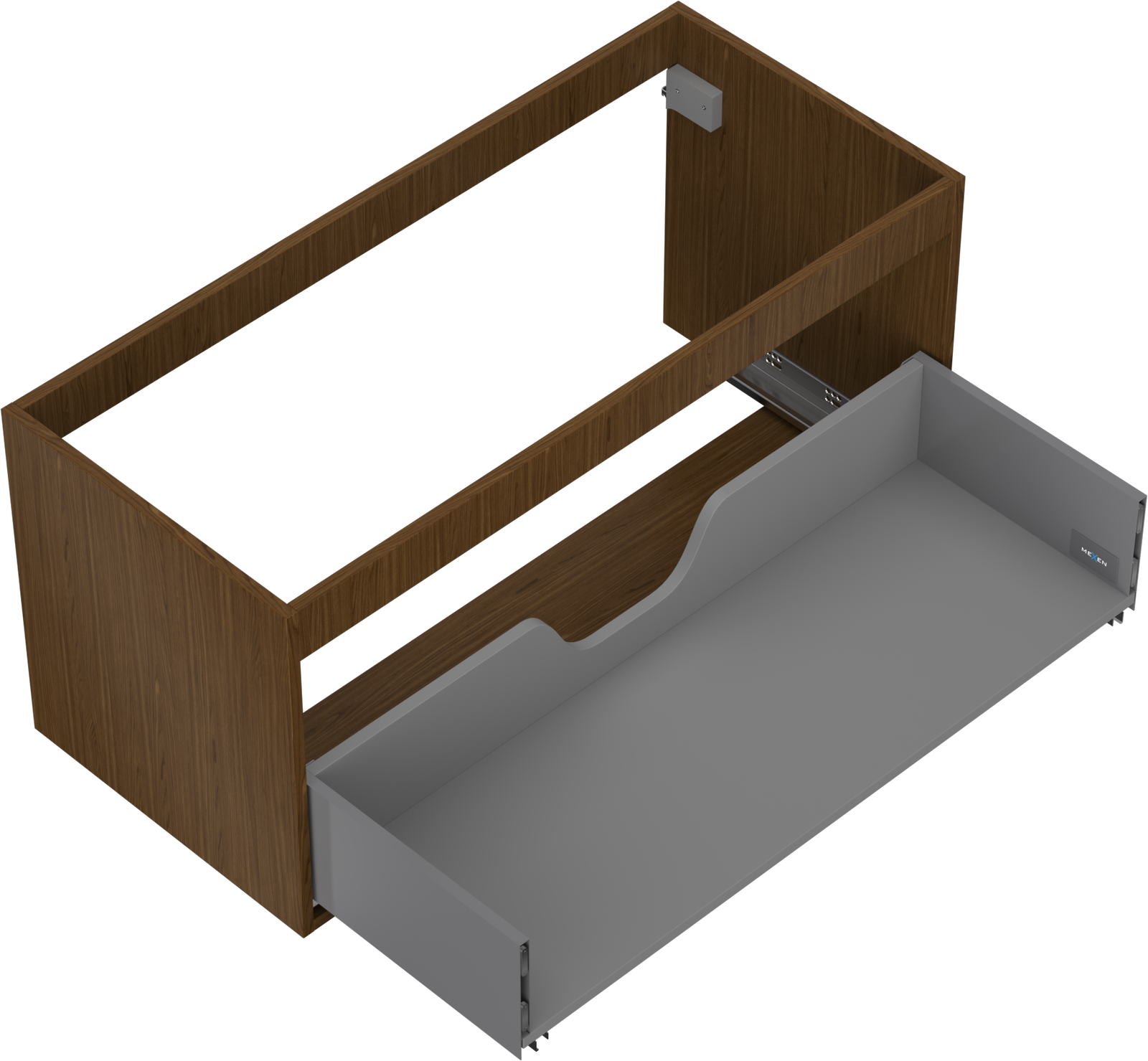 Il ritaglio nel cassetto è progettato in modo da ospitare il sifone, che è necessario nelle installazioni dei lavandini. Grazie a ciò, il mobile può essere montato in modo completamente funzionale, senza dover rinunciare allo spazio nel cassetto a favore dell'installazione.