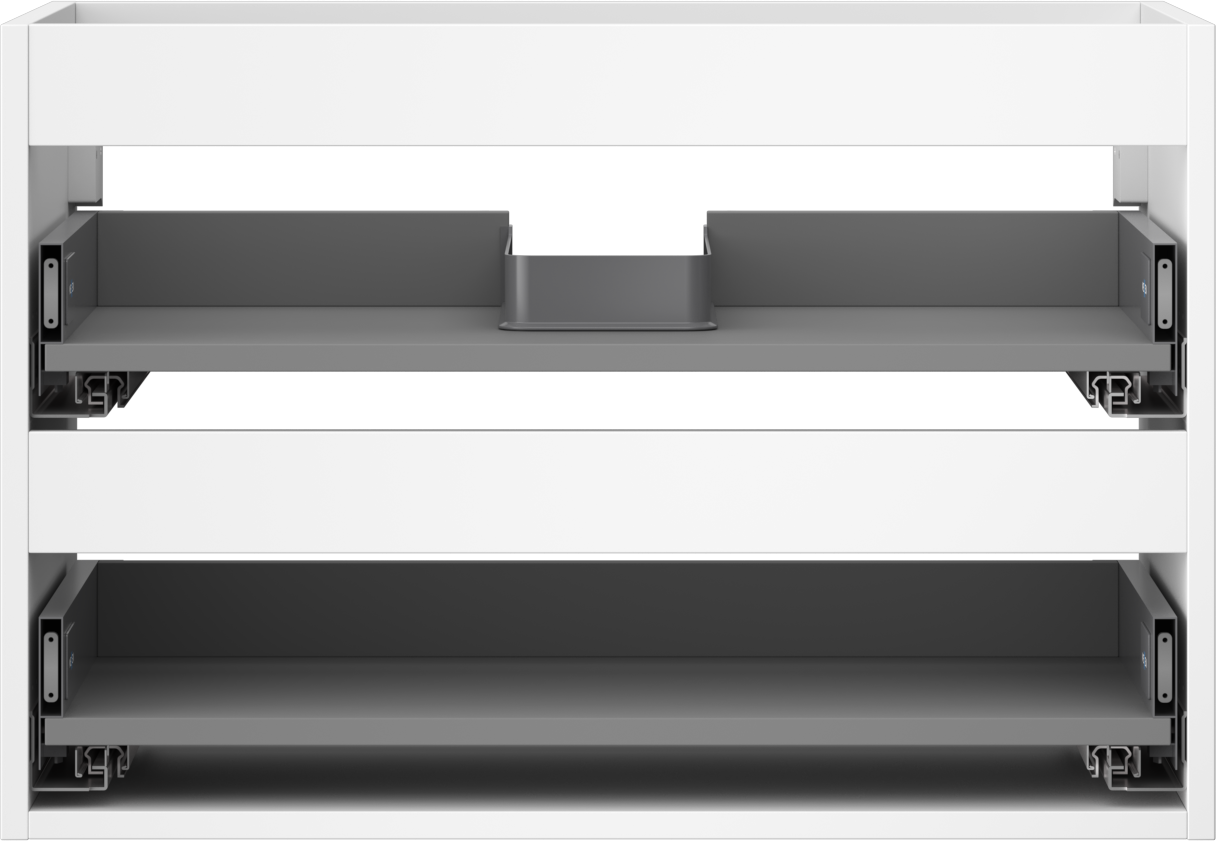 Il ritaglio nel cassetto è progettato in modo da ospitare il sifone, che è necessario nelle installazioni dei lavandini. Grazie a ciò, il mobile può essere montato in modo completamente funzionale, senza dover rinunciare allo spazio nel cassetto a favore dell'installazione.