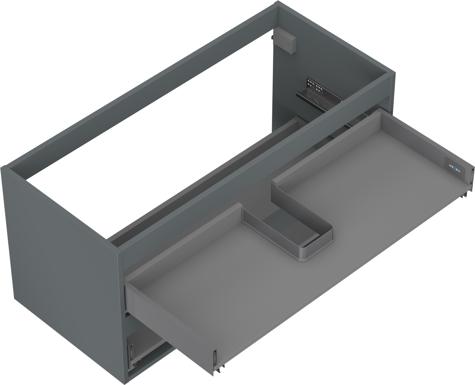 Il ritaglio nel cassetto è progettato in modo da ospitare il sifone, che è necessario nelle installazioni dei lavandini. Grazie a ciò, il mobile può essere montato in modo completamente funzionale, senza dover rinunciare allo spazio nel cassetto a favore dell'installazione.