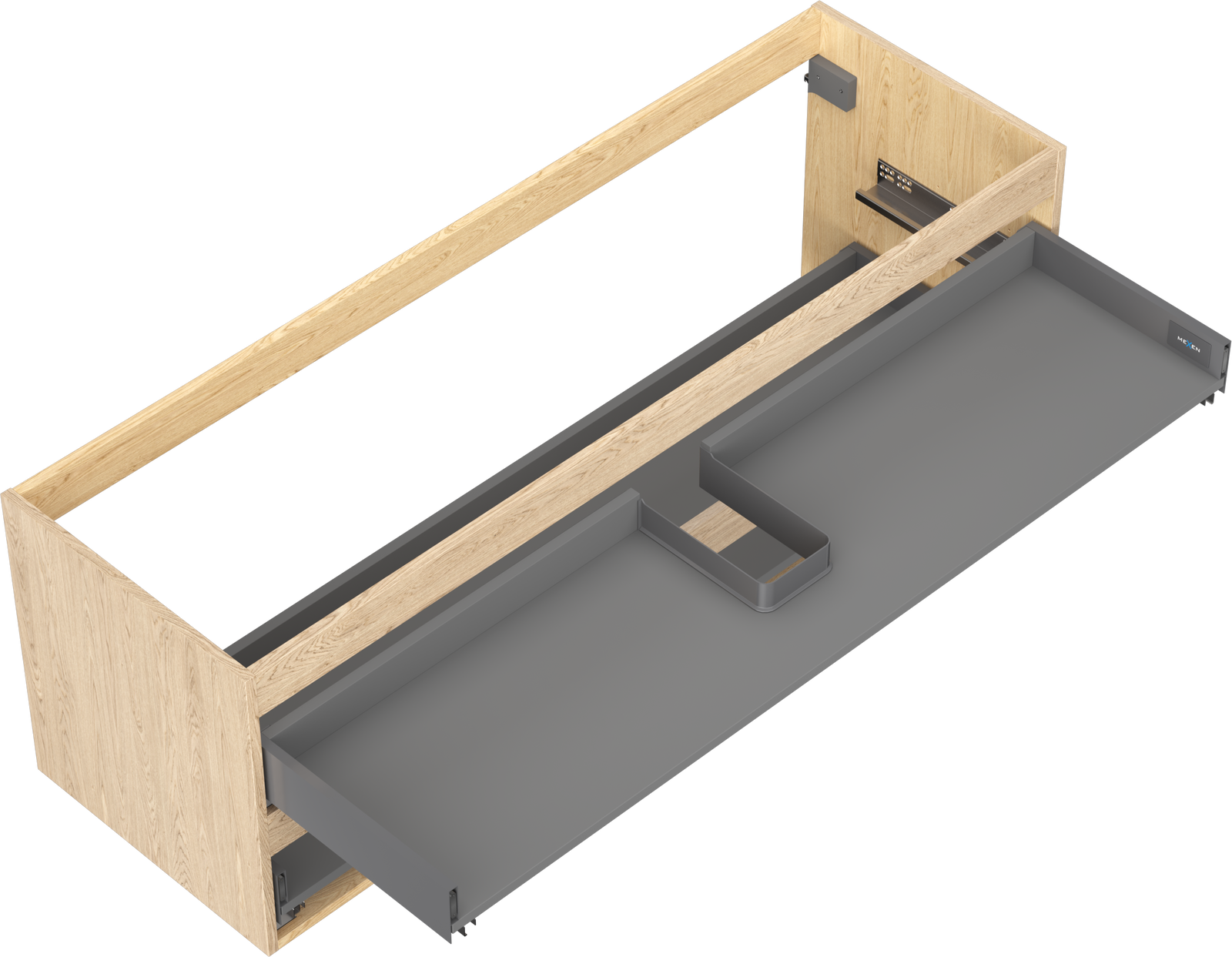 Il ritaglio nel cassetto è progettato in modo da ospitare il sifone, che è necessario nelle installazioni dei lavandini. Grazie a ciò, il mobile può essere montato in modo completamente funzionale, senza dover rinunciare allo spazio nel cassetto a favore dell'installazione.