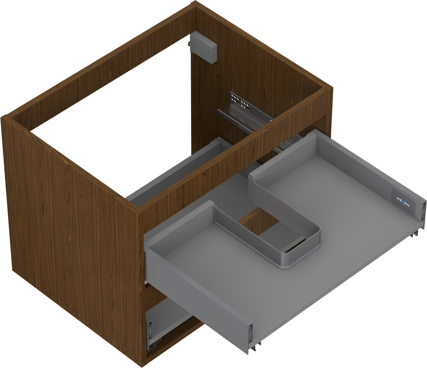 Il ritaglio nel cassetto è progettato in modo da ospitare il sifone, che è necessario nelle installazioni dei lavandini. Grazie a ciò, il mobile può essere montato in modo completamente funzionale, senza dover rinunciare allo spazio nel cassetto a favore dell'installazione.