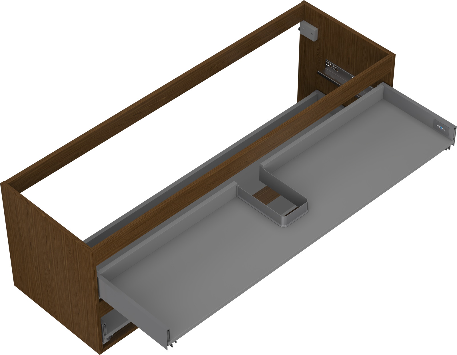 Il ritaglio nel cassetto è progettato in modo da ospitare il sifone, che è necessario nelle installazioni dei lavandini. Grazie a ciò, il mobile può essere montato in modo completamente funzionale, senza dover rinunciare allo spazio nel cassetto a favore dell'installazione.