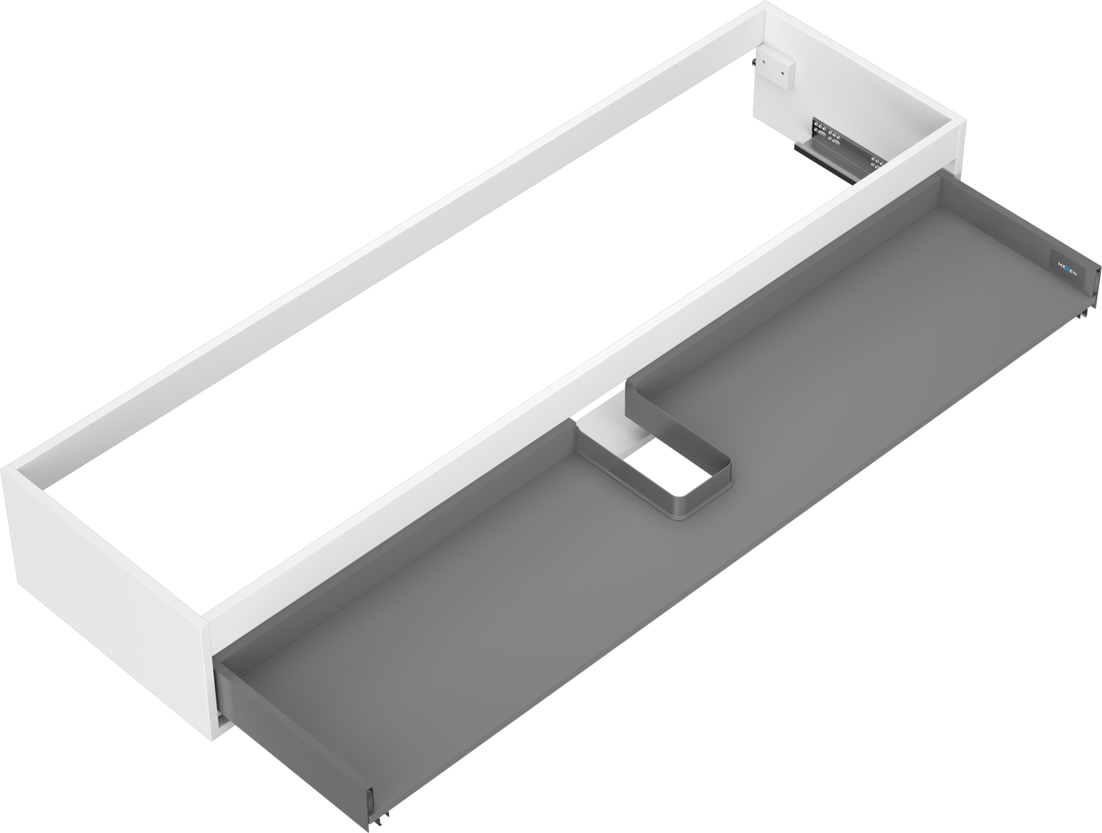 Il ritaglio nel cassetto è progettato in modo da ospitare il sifone, che è necessario nelle installazioni dei lavandini. Grazie a ciò, il mobile può essere montato in modo completamente funzionale, senza dover rinunciare allo spazio nel cassetto a favore dell'installazione.