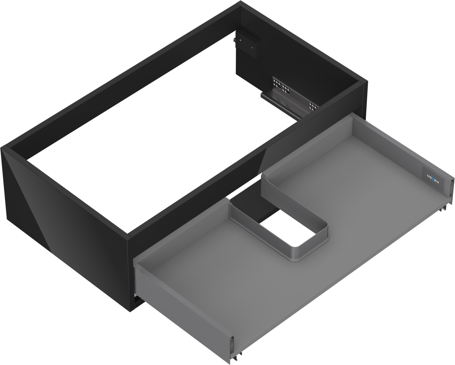 Il ritaglio nel cassetto è progettato in modo da ospitare il sifone, che è necessario nelle installazioni dei lavandini. Grazie a ciò, il mobile può essere montato in modo completamente funzionale, senza dover rinunciare allo spazio nel cassetto a favore dell'installazione.