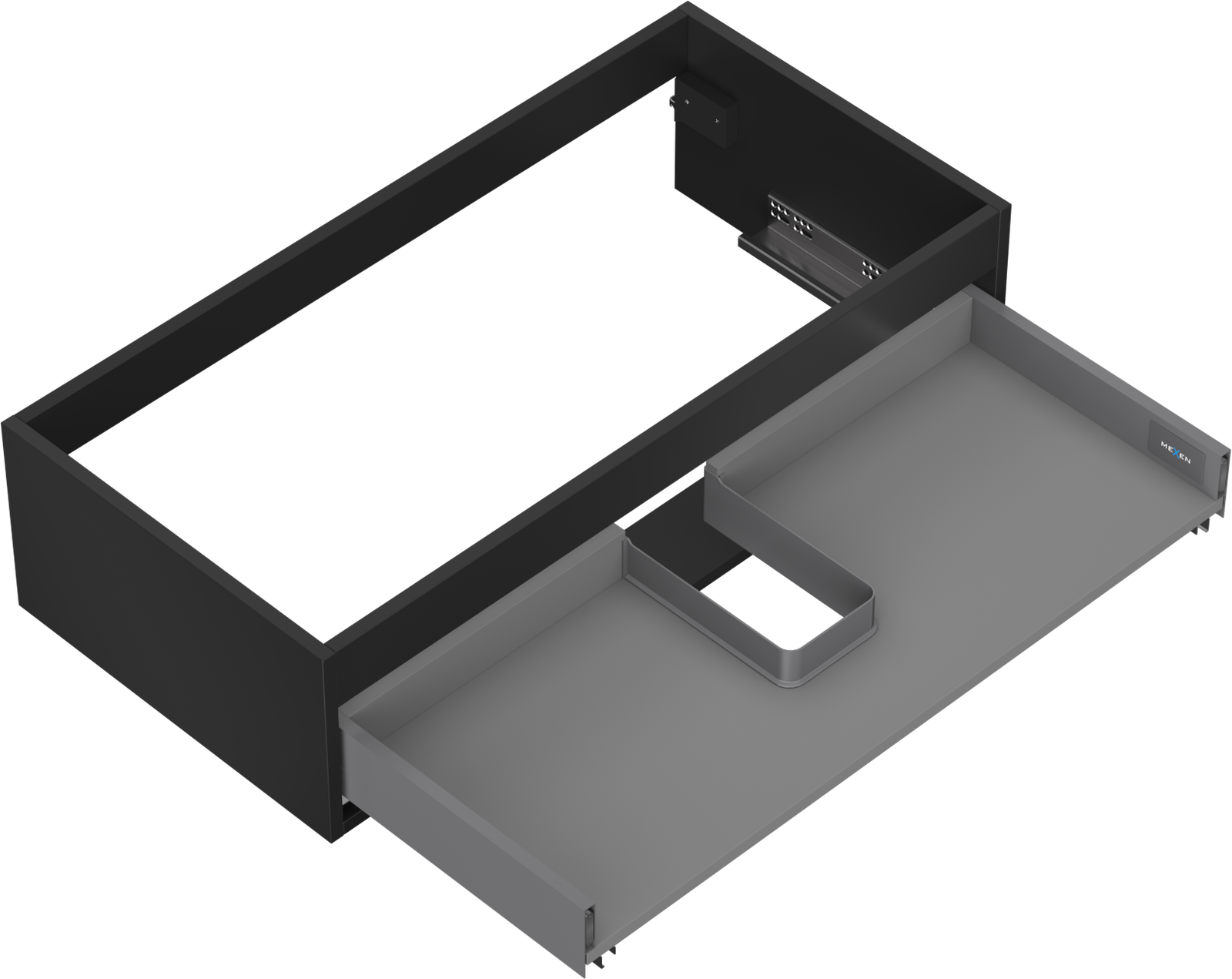 Il ritaglio nel cassetto è progettato in modo da ospitare il sifone, che è necessario nelle installazioni dei lavandini. Grazie a ciò, il mobile può essere montato in modo completamente funzionale, senza dover rinunciare allo spazio nel cassetto a favore dell'installazione.