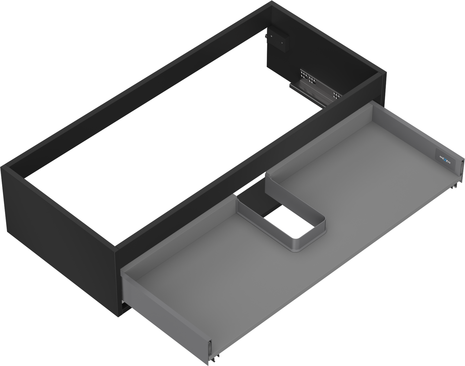 Il ritaglio nel cassetto è progettato in modo da ospitare il sifone, che è necessario nelle installazioni dei lavandini. Grazie a ciò, il mobile può essere montato in modo completamente funzionale, senza dover rinunciare allo spazio nel cassetto a favore dell'installazione.