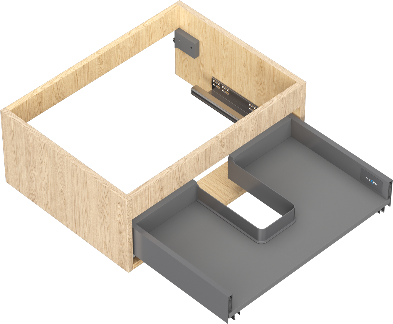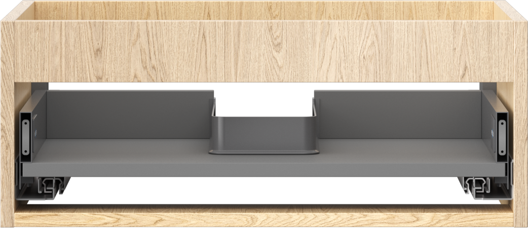 Il ritaglio nel cassetto è progettato in modo da ospitare il sifone, che è necessario nelle installazioni dei lavandini. Grazie a ciò, il mobile può essere montato in modo completamente funzionale, senza dover rinunciare allo spazio nel cassetto a favore dell'installazione.