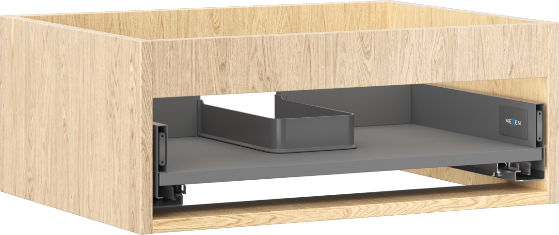 Un cassetto a estrazione completa è un tipo di cassetto dotato di un meccanismo che consente la sua estrazione completa dal corpo del mobile. Questo meccanismo permette un accesso più facile al contenuto del cassetto, poiché non è necessario raggiungere i bordi posteriori.