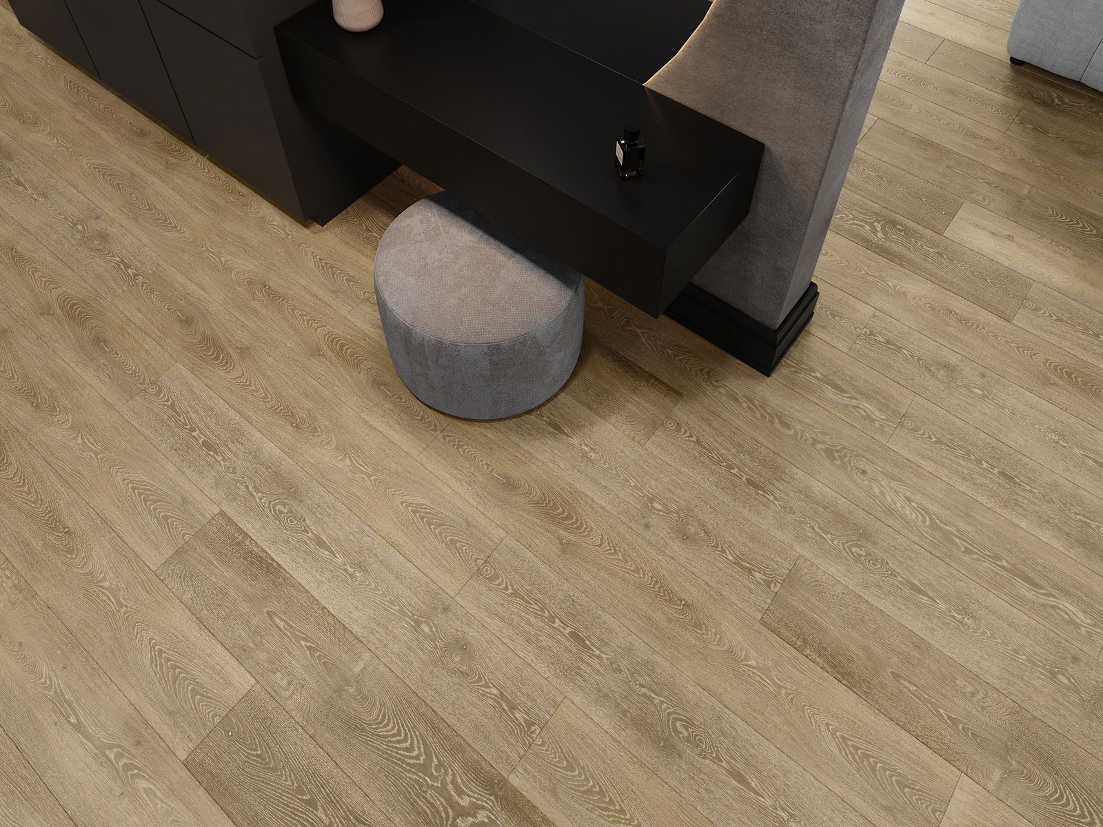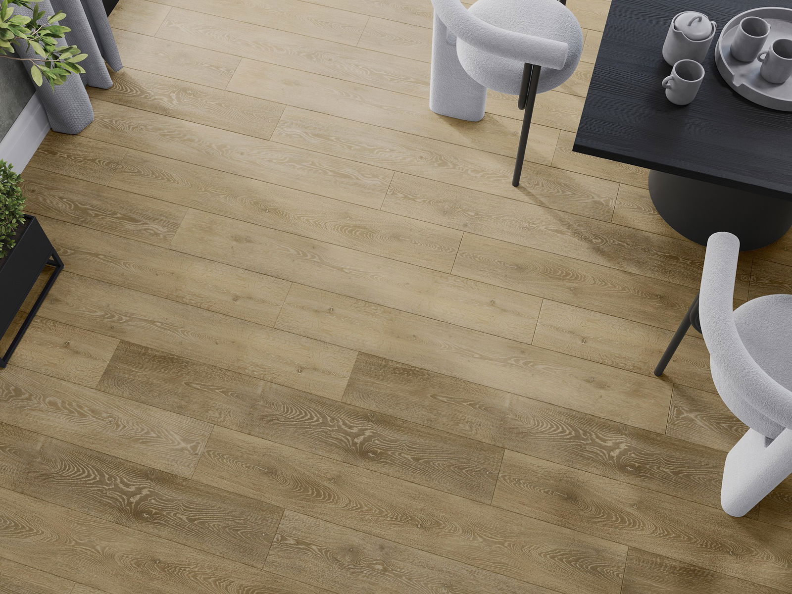 I pannelli hanno una fuga su 4 lati - ogni lato è stato fresato in modo tale che dopo la posa si formi un giunto a forma di V. Questo design rende il pavimento più strutturato, donandogli profondità e un carattere estetico. Questo effetto è particolarmente apprezzato nelle moderne decorazioni, dove i dettagli sottolineano l'aspetto straordinario degli interni.