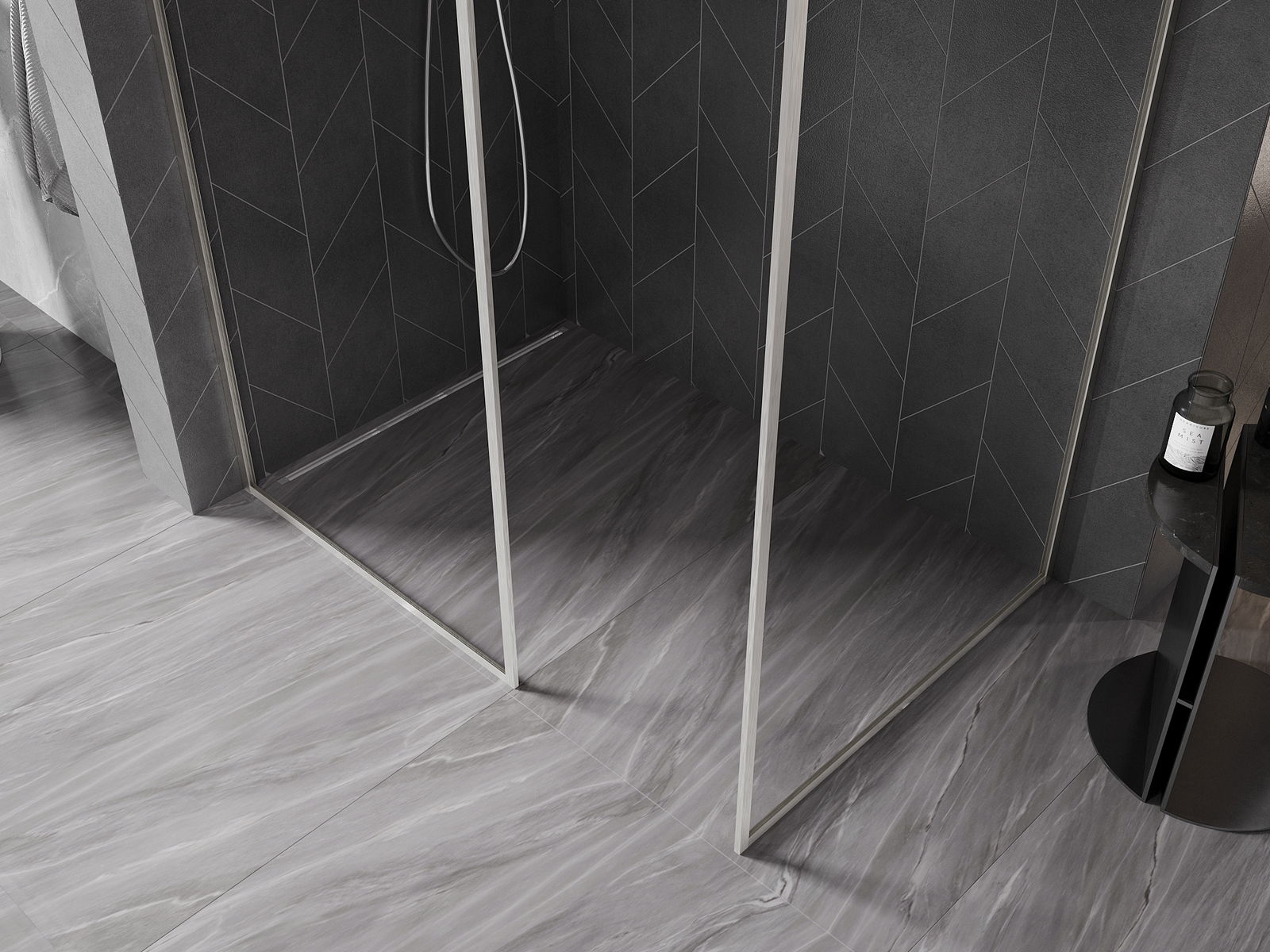 Mexen Kioto-F schermo doccia Walk-in con cornice 130 x 70 cm, trasparente 8 mm, nichel spazzolato - 800-130-202-04-97-070
