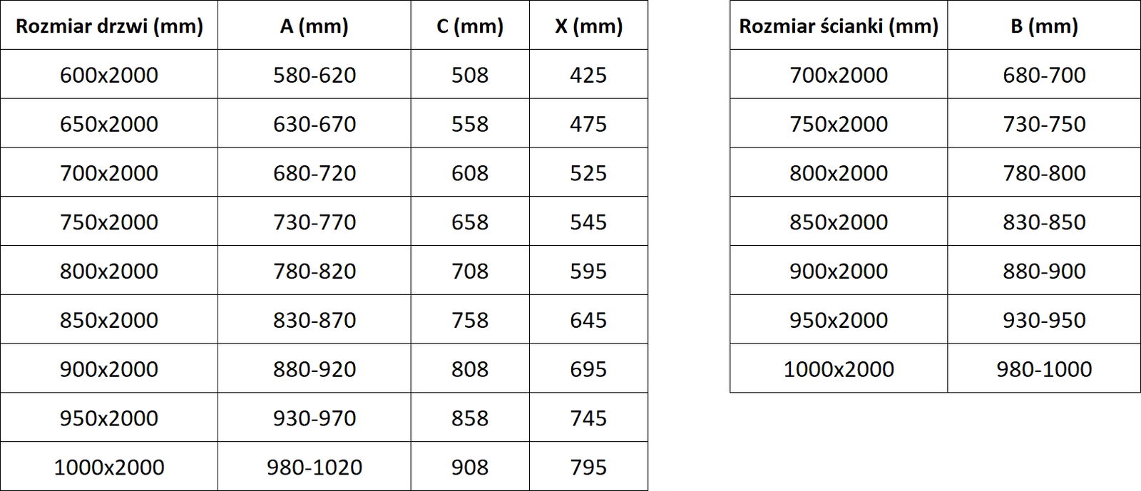 Dimensione: 90x100 cm (porta 90 cm. parete 100 cm)