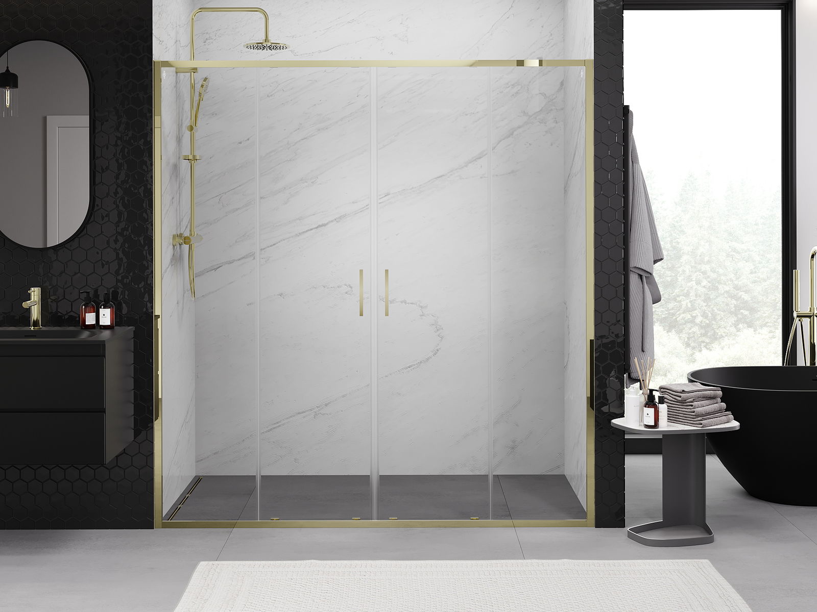 Mexen Exo doppie porte doccia scorrevoli 200 cm, trasparenti, dorate - 8152-200-000-50-00