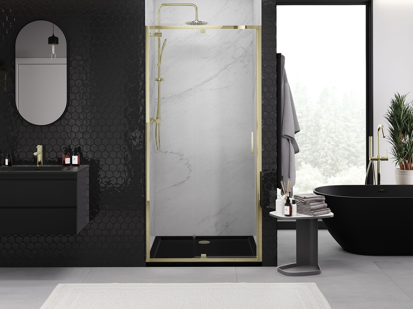 Grazie all'uso di un sistema di montaggio universale, le porte della doccia possono essere montate a destra o a sinistra, a seconda delle esigenze. In questo modo puoi progettare facilmente una doccia adatta allo spazio del bagno.