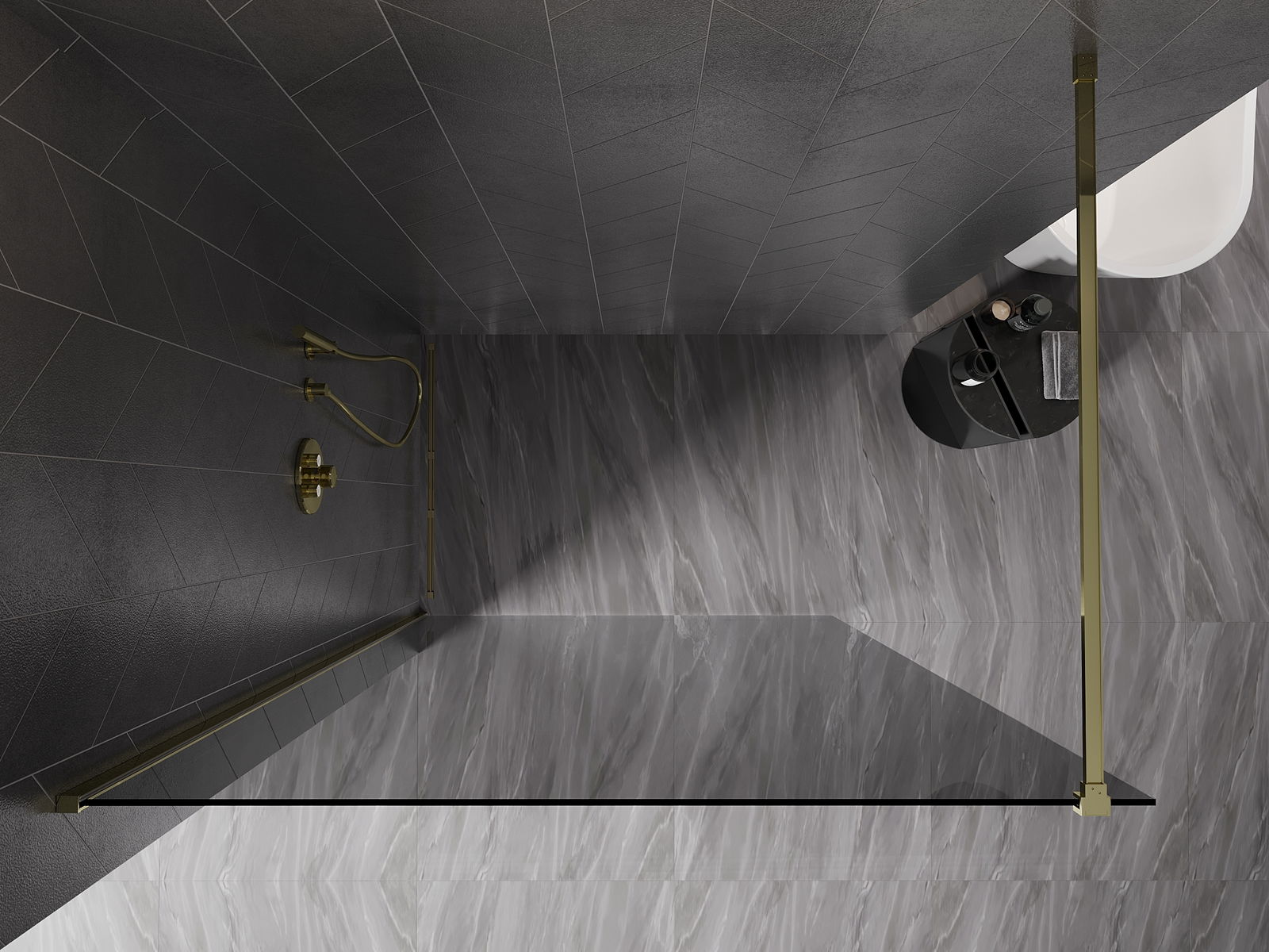 Mexen Kioto-X parete doccia walk-in 130 x 200 cm, grafite 10 mm, oro - 800-130-101-50-40-X