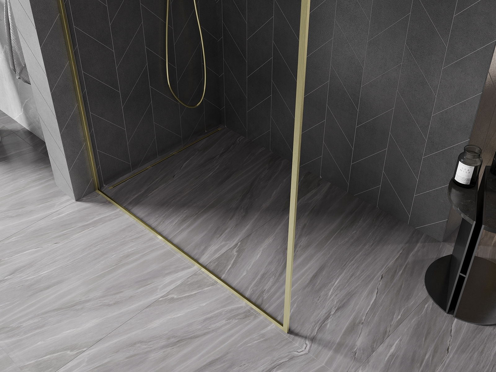 Mexen Kioto-XF parete doccia Walk-in con cornice 130 x 202 cm, trasparente 10 mm, oro spazzolato - 800-130-104-55-00-X