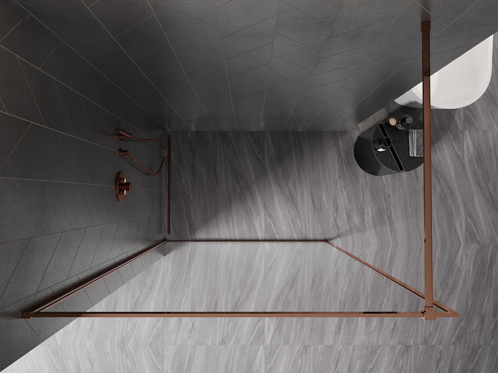 Mexen Kioto-XF parete doccia Walk-in con cornice 100 x 202 cm, trasparente 10 mm, oro rosa - 800-100-104-60-00-X