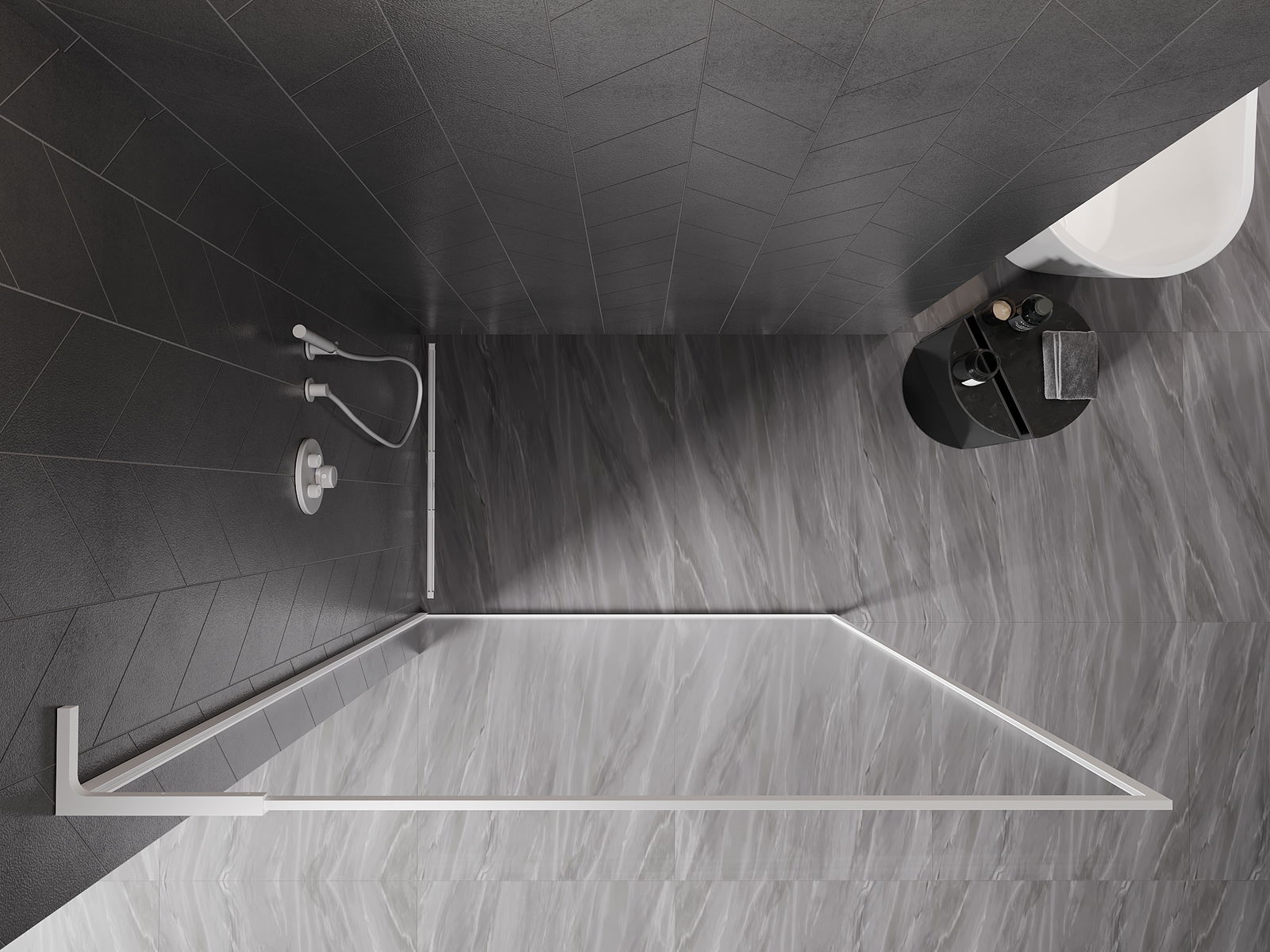 Il prodotto, a seconda delle esigenze, può essere installato sia sul piatto doccia che direttamente sul pavimento. Il metodo di installazione universale consente di adattare il prodotto a diversi tipi di bagni e configurazioni di spazio.