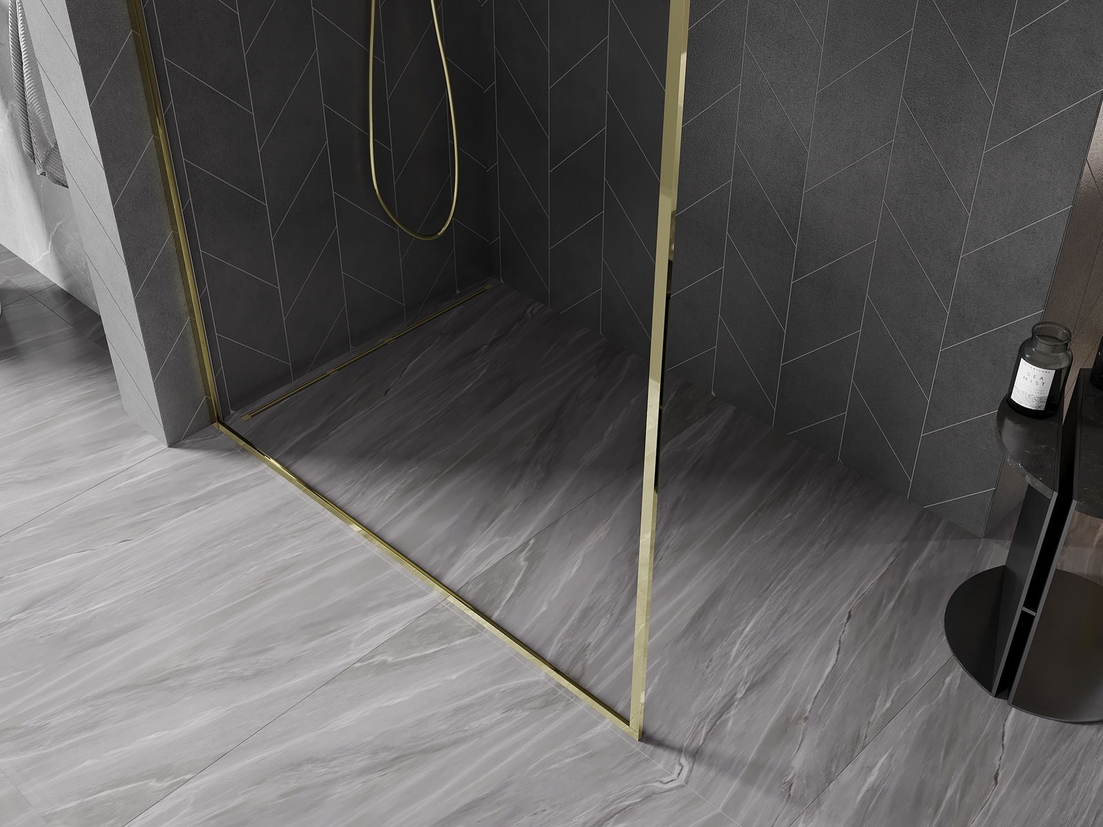 Mexen Kioto-F L Pannello doccia Walk-in con cornice 100 x 202 cm, trasparente 8 mm, oro - 800-100-174-50-00