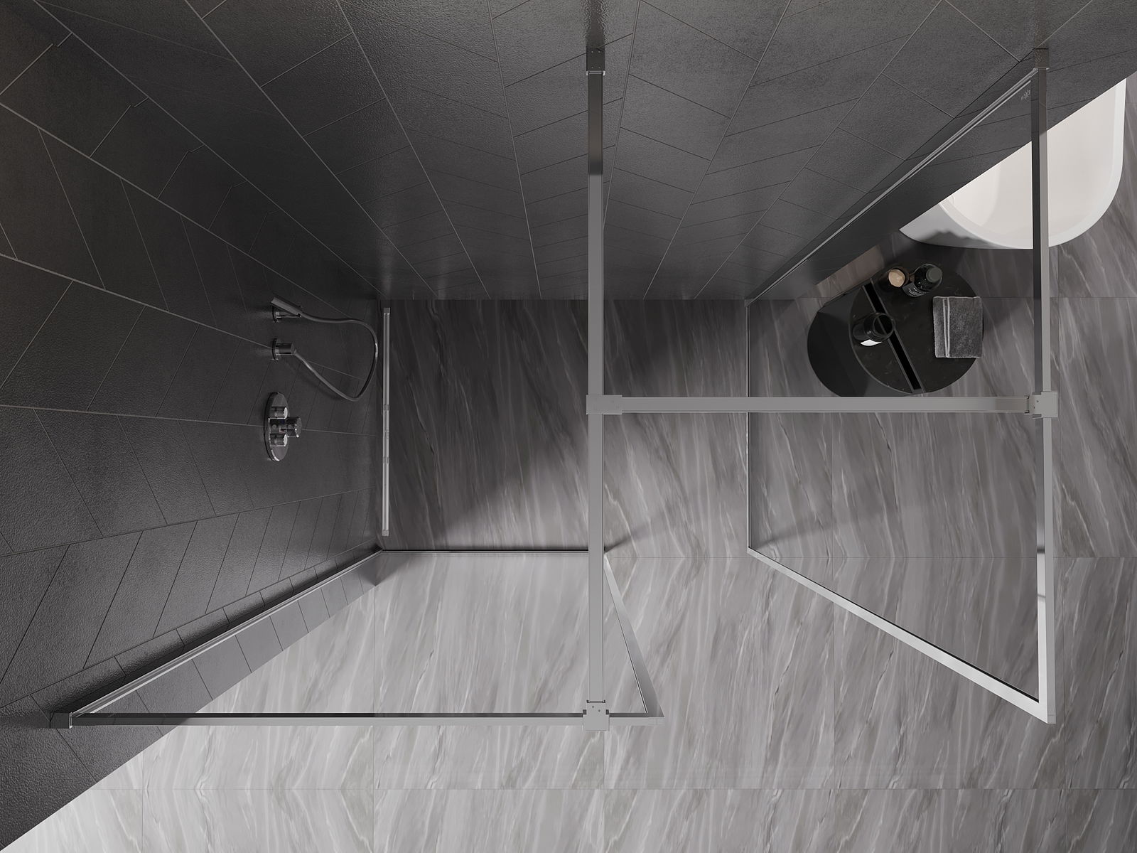 Il prodotto, a seconda delle esigenze, può essere installato sia sul piatto doccia che direttamente sul pavimento. Il metodo di installazione universale consente di adattare il prodotto a diversi tipi di bagni e configurazioni di spazio.