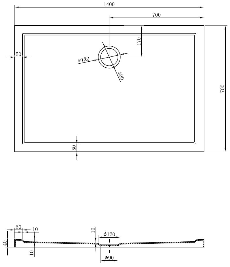 Il piatto doccia è stato progettato in modo che l'acqua possa defluire liberamente verso lo scarico. Garantisce un rapido ed efficiente drenaggio dell'acqua dalla superficie del piatto doccia, prevenendo la formazione di pozzanghere e l'allagamento del bagno.