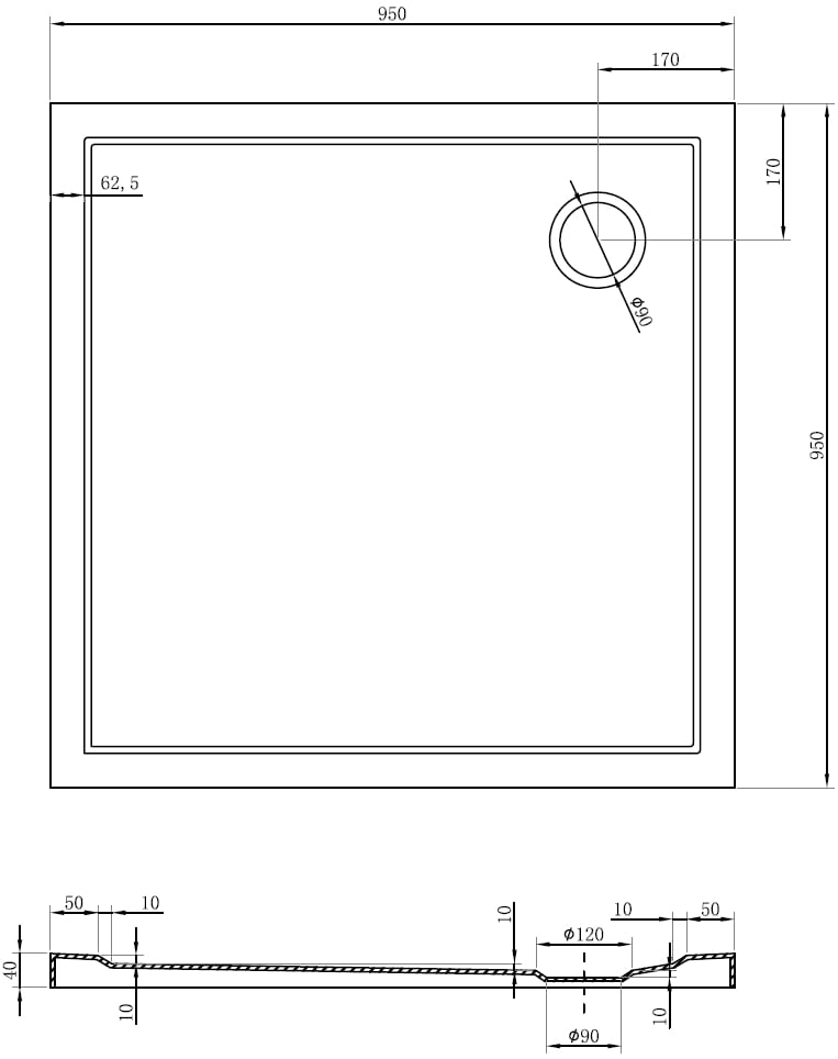 Il piatto doccia è stato progettato in modo che l'acqua possa defluire liberamente verso lo scarico. Garantisce un rapido ed efficiente drenaggio dell'acqua dalla superficie del piatto doccia, prevenendo la formazione di pozzanghere e l'allagamento del bagno.