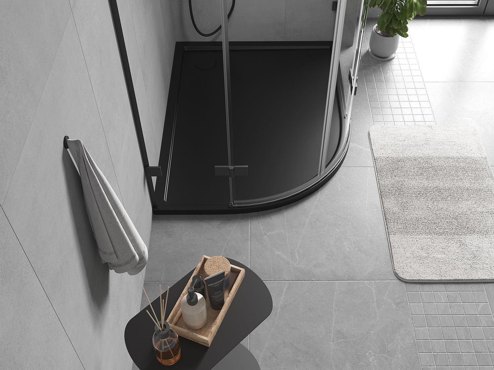 Mexen Flow piatto doccia semicircolare asimmetrico slim destro 100 x 90 cm, nero opaco - 46Q709010R