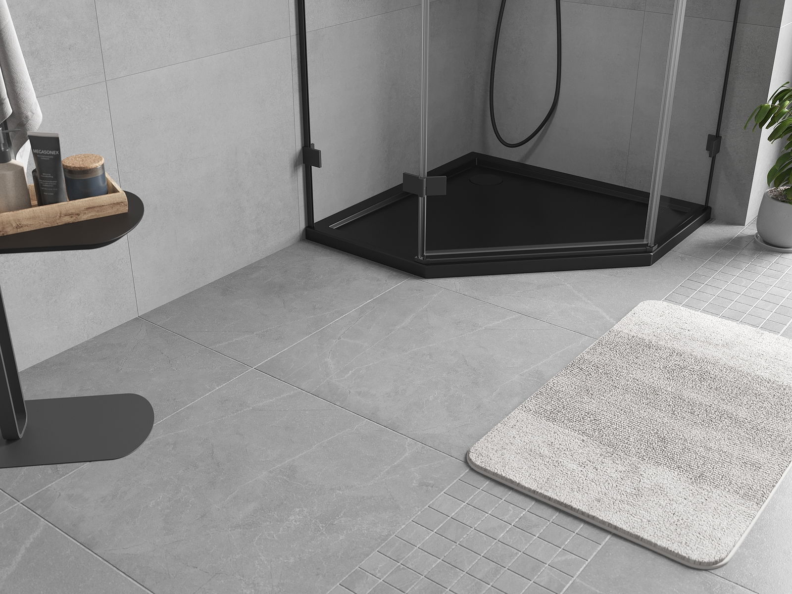 Mexen Flow piatto doccia pentagonale slim 90 x 90 cm, nero opaco - 46P709090