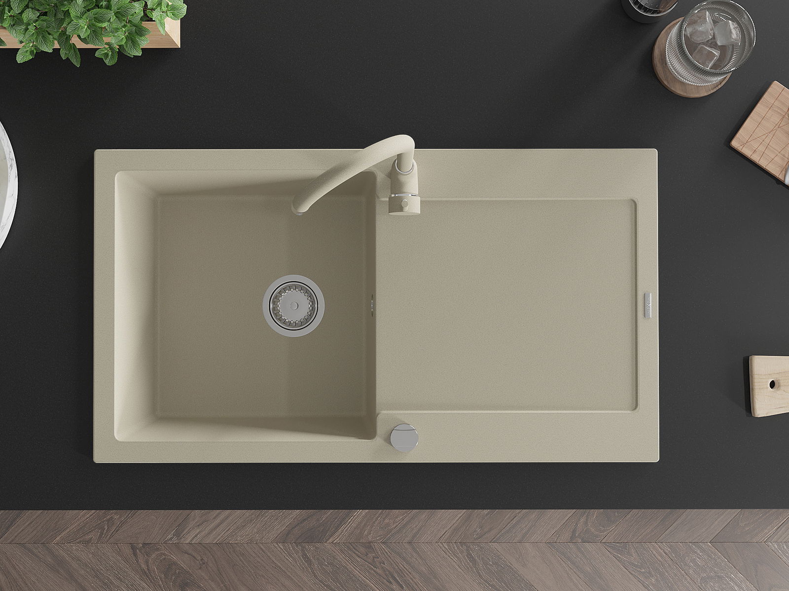 Mexen Leo lavello in granito 1-vasca con scolapiatti e miscelatore cucina Telma, beige - 6501-69-670200-69