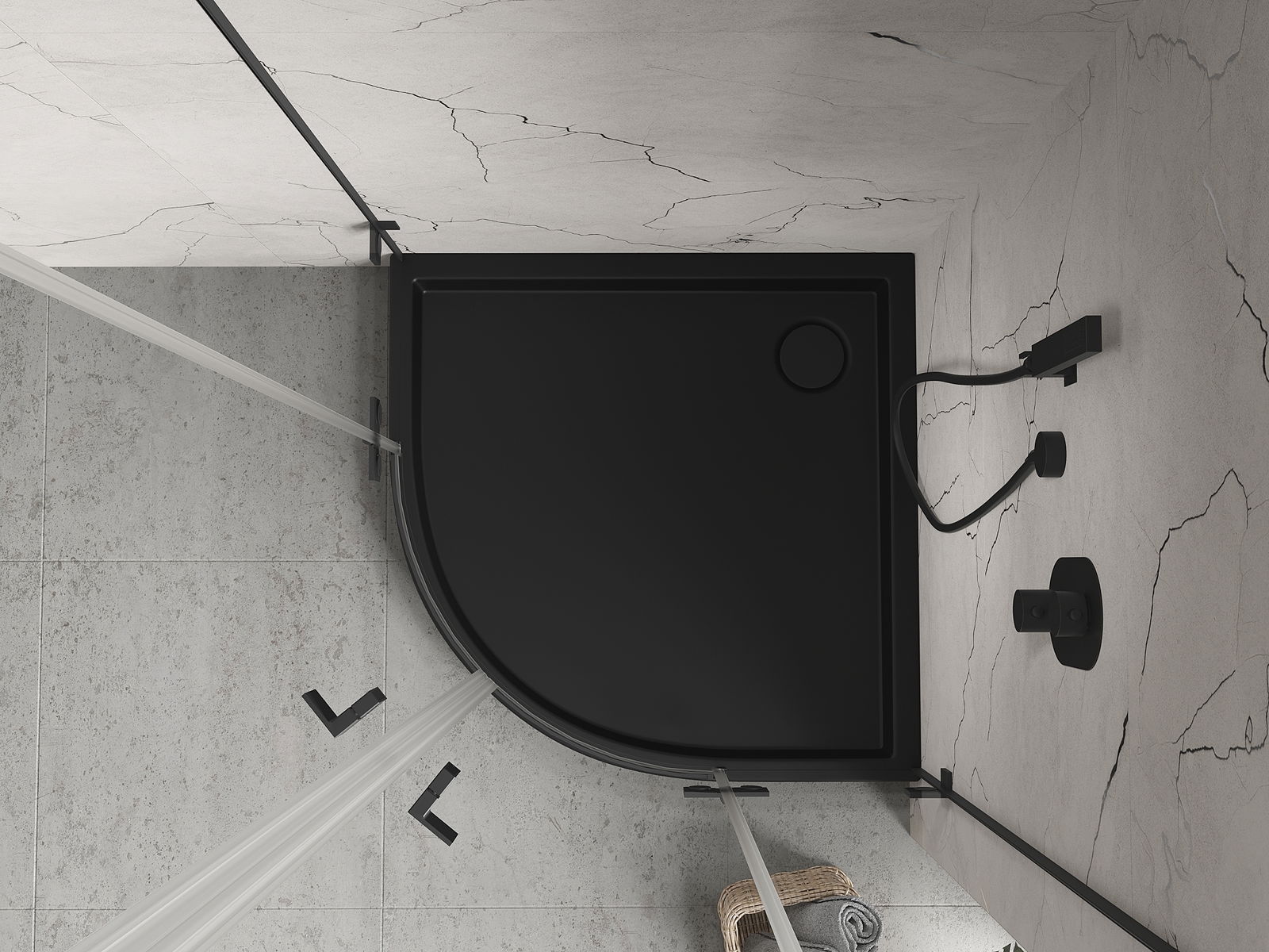 Mexen Flow+ piatto doccia semicircolare 90 x 90 cm, nero opaco - 46Q709090H