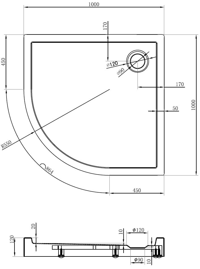 Il piatto doccia è stato progettato in modo che l'acqua possa defluire liberamente verso lo scarico. Garantisce un rapido ed efficiente drenaggio dell'acqua dalla superficie del piatto doccia, prevenendo la formazione di pozzanghere e l'allagamento del bagno.