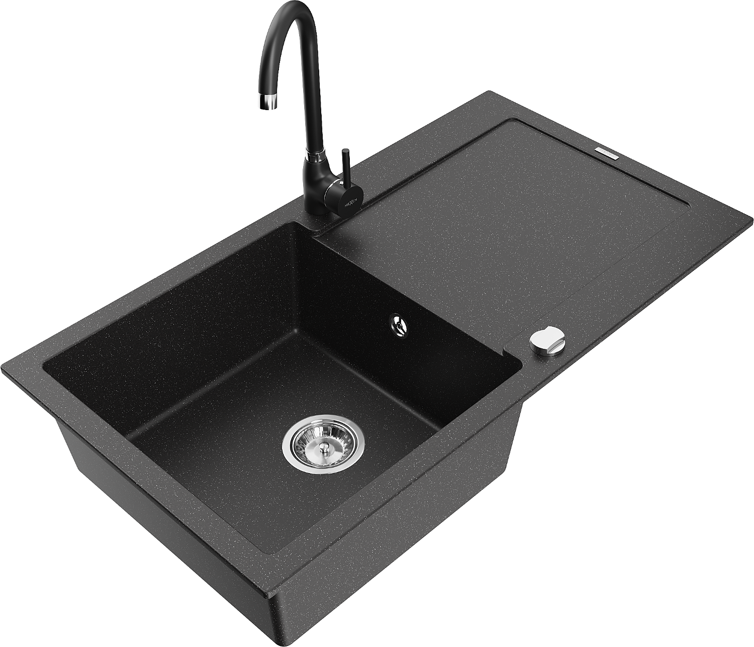 Mexen Leo lavello in granito a 1 vasca con sgocciolatoio e miscelatore cucina Telma, nero/argento metallizzato