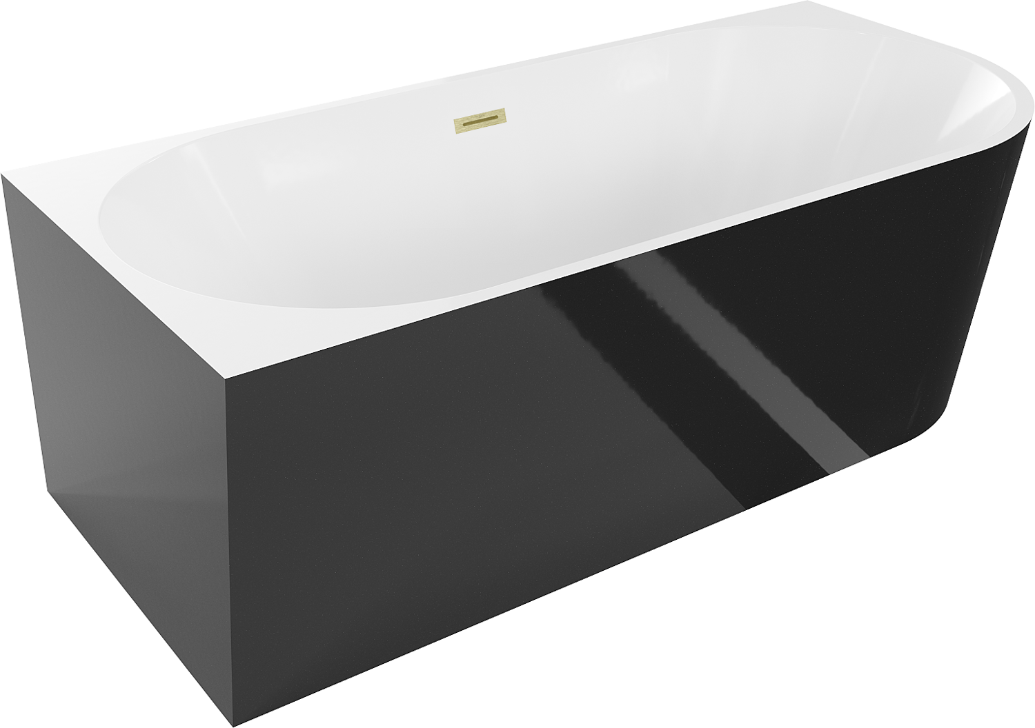 Mexen Mia vasca da bagno angolare sinistra indipendente 140 x 75 cm, bianca/nera, scarico dorato spazzolato - 52691407575L-55
