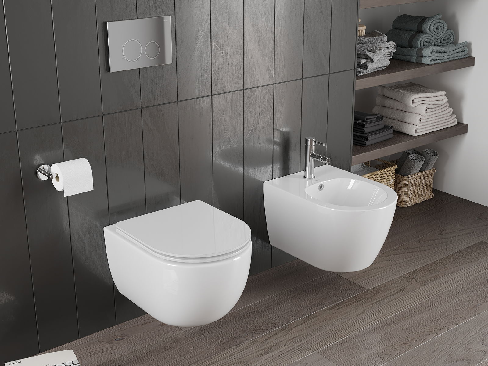 Tavola sottile con una forma eccezionalmente ergonomica e un aspetto estremamente snello. Il design si adatta perfettamente all'interno moderno del bagno, dando un'impressione di leggerezza. Ottima scelta per allestimenti minimalisti.