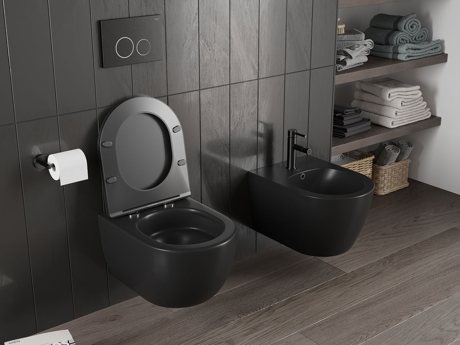 Tavola sottile con una forma eccezionalmente ergonomica e un aspetto estremamente snello. Il design si adatta perfettamente all'interno moderno del bagno, dando un'impressione di leggerezza. Ottima scelta per allestimenti minimalisti.