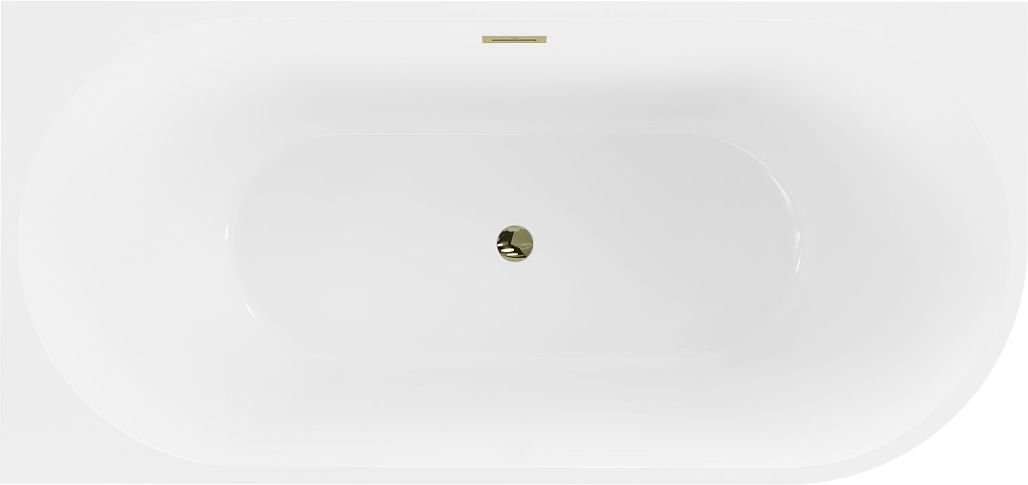 Mexen Mia vasca da bagno freestanding angolare sinistra 160 x 80 cm, bianca, troppo pieno dorato - 52691608000L-50
