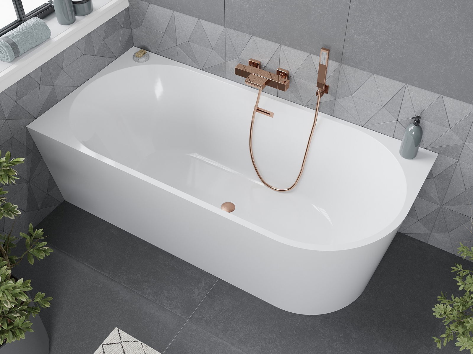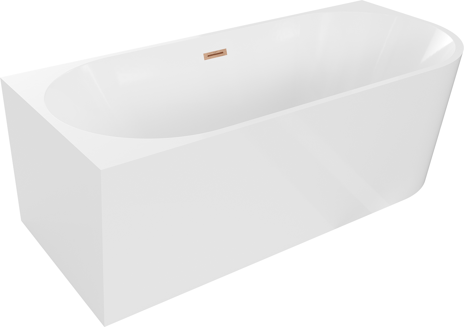 Mexen Mia vasca da bagno freestanding ad angolo sinistro 160 x 80 cm, bianca, troppopieno in rame spazzolato - 52691608000L-65