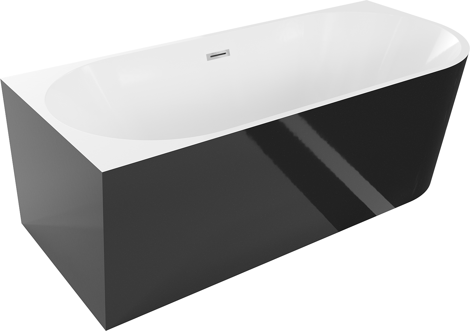 Mexen Mia vasca da bagno freestanding ad angolo sinistra 160 x 80 cm, bianca/nera, troppo pieno cromato - 52691608075L-01