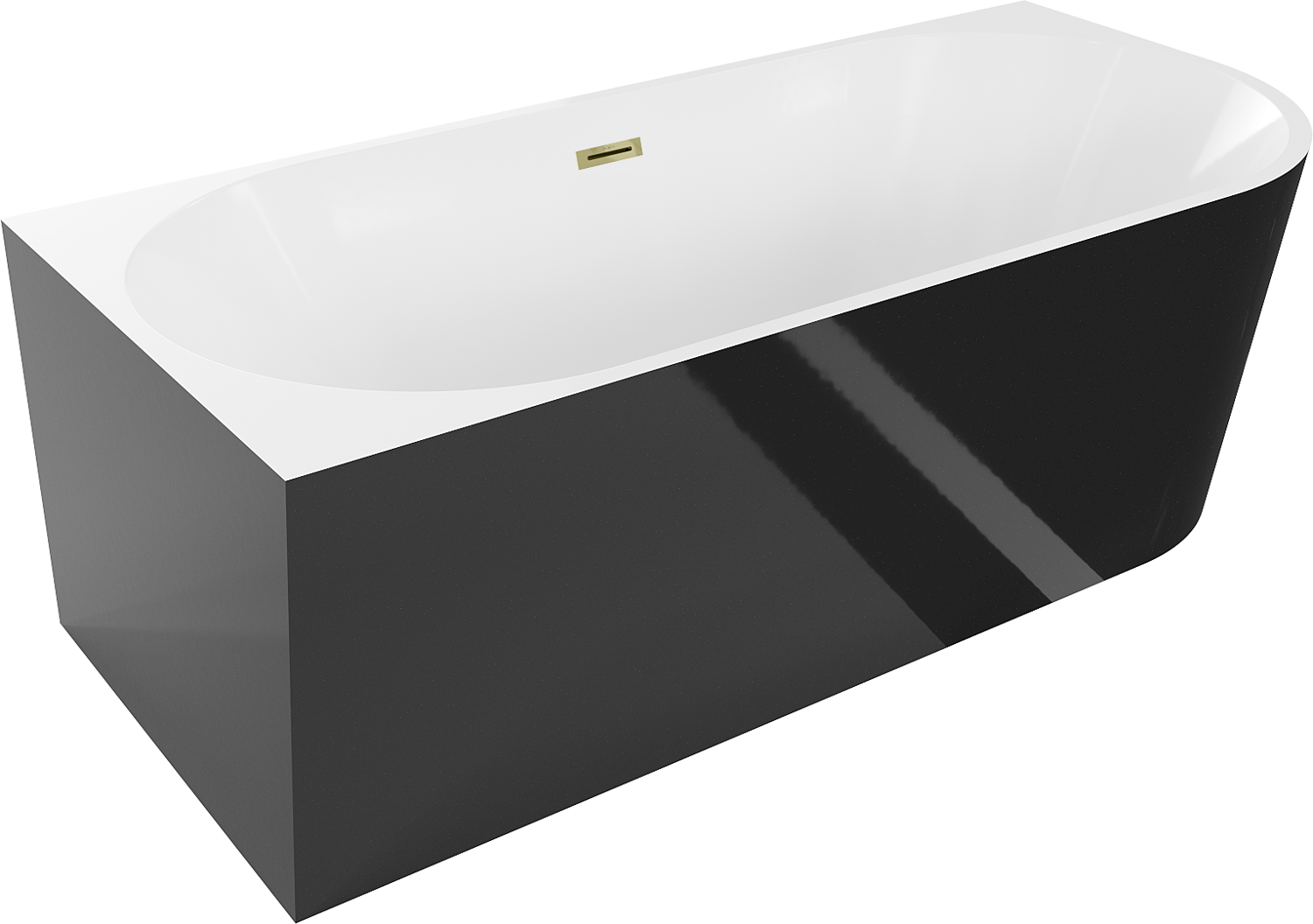 Mexen Mia vasca da bagno freestanding angolare sinistra 160 x 80 cm, bianco/nero, troppopieno oro - 52691608075L-50