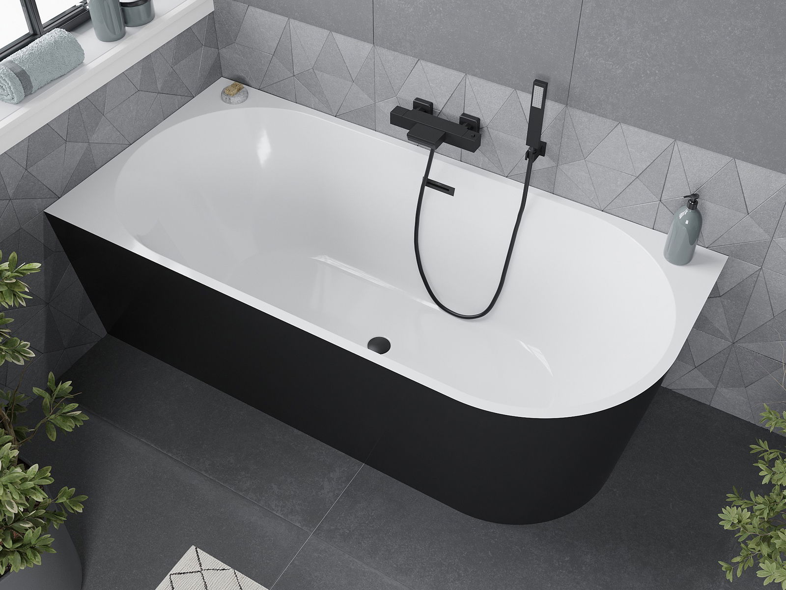Mexen Mia vasca da bagno freestanding angolare sinistra 160 x 80 cm, bianco/nero, troppo pieno nero - 52691608075L-70