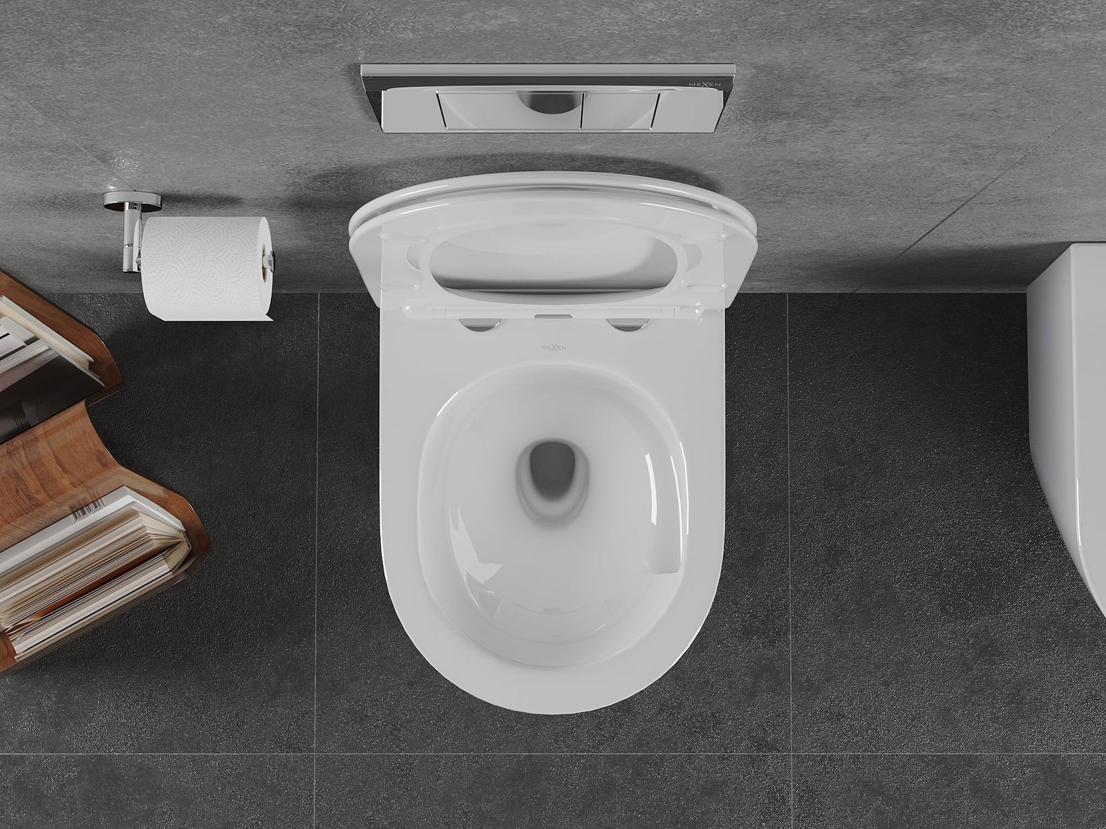Sistema moderno in cui tutti gli elementi di montaggio sono stati nascosti. Non è solo una soluzione estetica, ma anche molto pratica. Facilita il mantenimento della pulizia del bagno e assicura un aspetto ordinato.