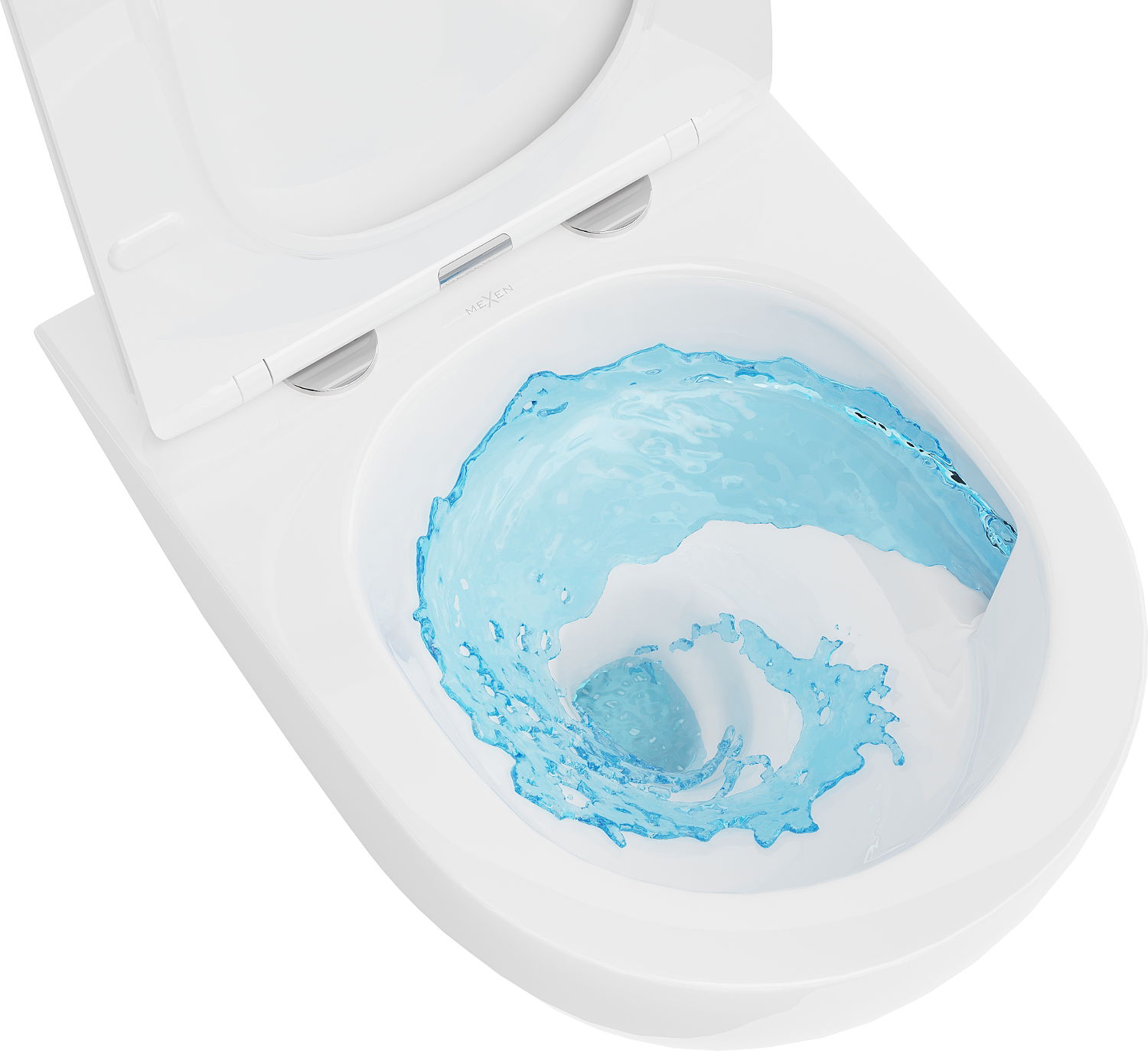 Sistema caratterizzato dall'assenza del bordo tradizionale (rimless) e da un sistema di scarico specifico e a spirale, che ricorda un vortice. L'acqua di scarico crea l'effetto "tornado", risciacquando rapidamente ed efficacemente l'intera superficie del vaso, contribuendo a una migliore pulizia e prevenendo l'accumulo di sporco.