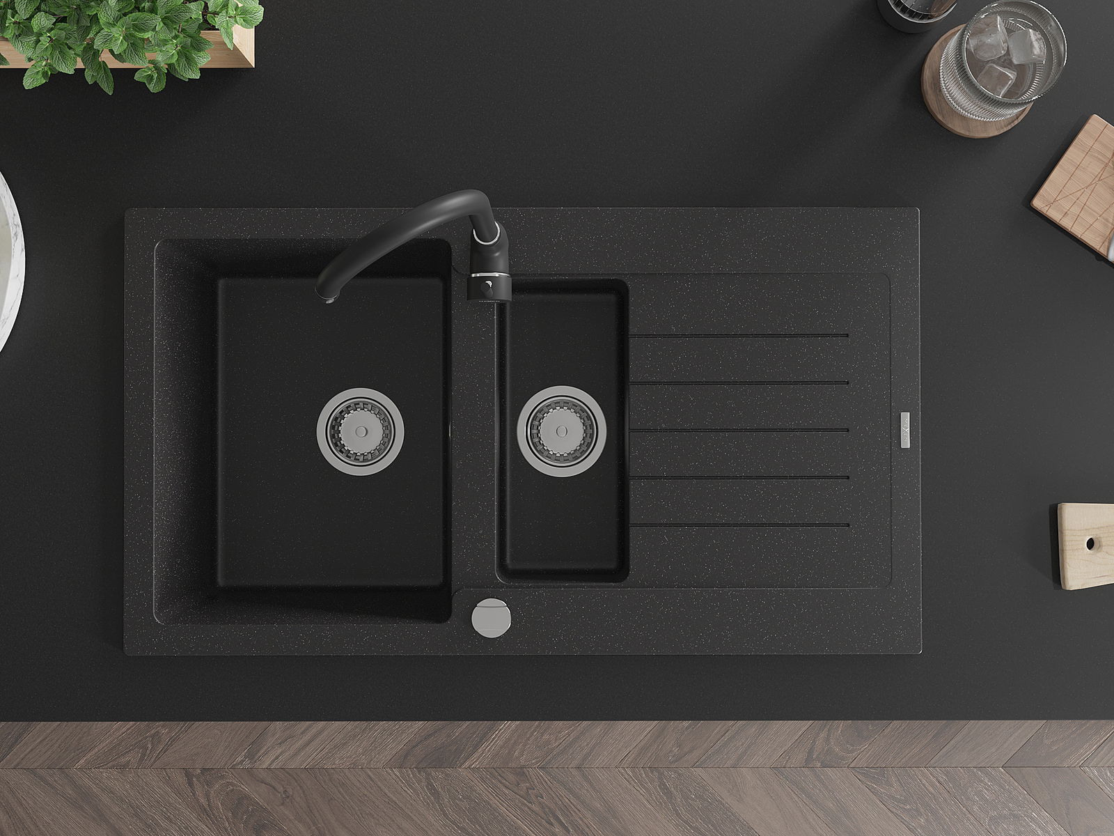 La scelta di un lavello con sgocciolatoio è una soluzione pratica che consente di riporre piatti, verdure e frutta lavati. Lo sgocciolatoio facilita la cucina quotidiana e aiuta a mantenere l'ordine in cucina.