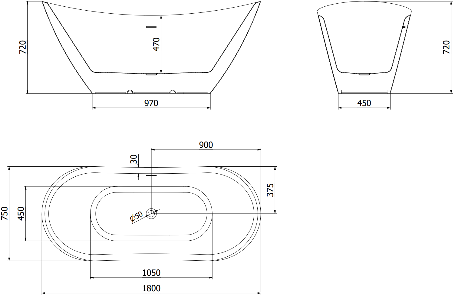 Mexen Lotos vasca da bagno autoportante 180 x 75 cm, bianca, troppopieno nichel spazzolato - 52051807700-97