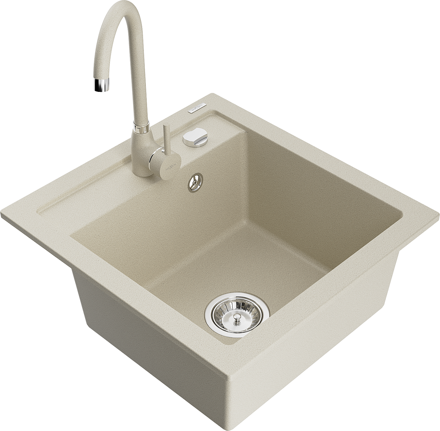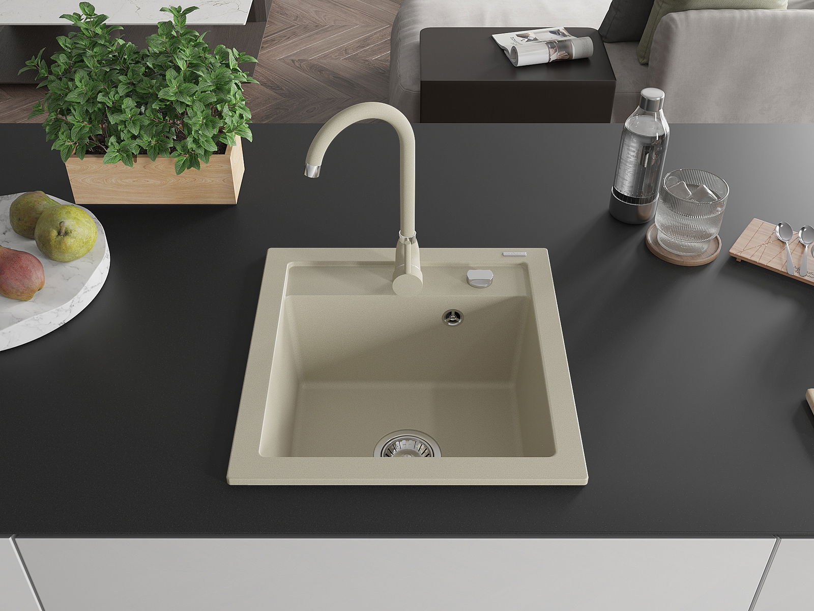 Mexen Vito lavello da cucina in granito a 1 vasca con rubinetto Telma, beige - 6503-69-670200-69