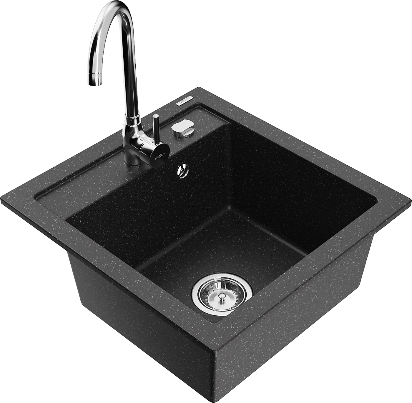 Mexen Vito lavello da cucina in granito a 1 vasca con rubinetto Telma, nero/argento metallizzato - 6503-73-670200-00