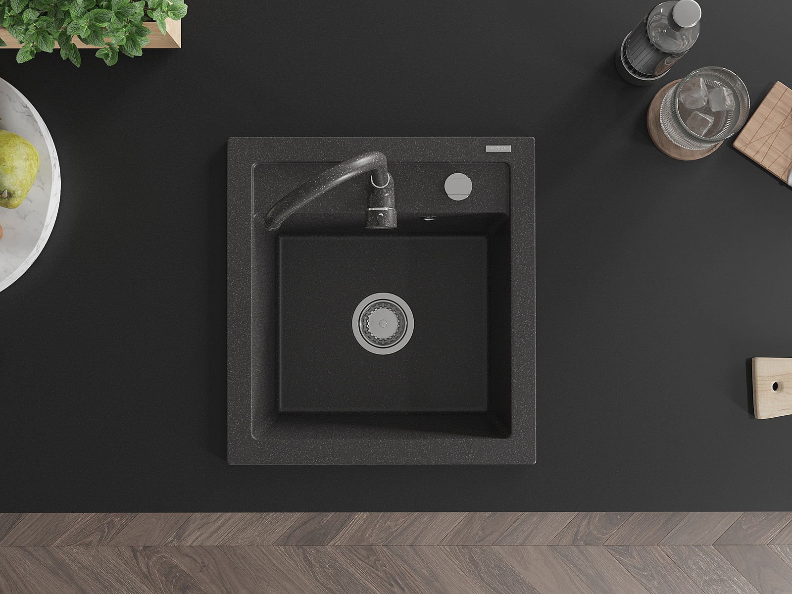 Mexen Vito lavello da cucina in granito 1-vasca con miscelatore Telma, nero maculato - 6503-76-670200-76