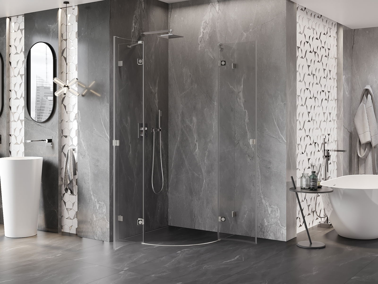 Le porte a battente consentono la massima libertà durante l'uso. Dispongono di solidi cardini realizzati in materiale durevole, che non creano difficoltà nella pulizia e consentono un facile accesso all'interno della cabina.