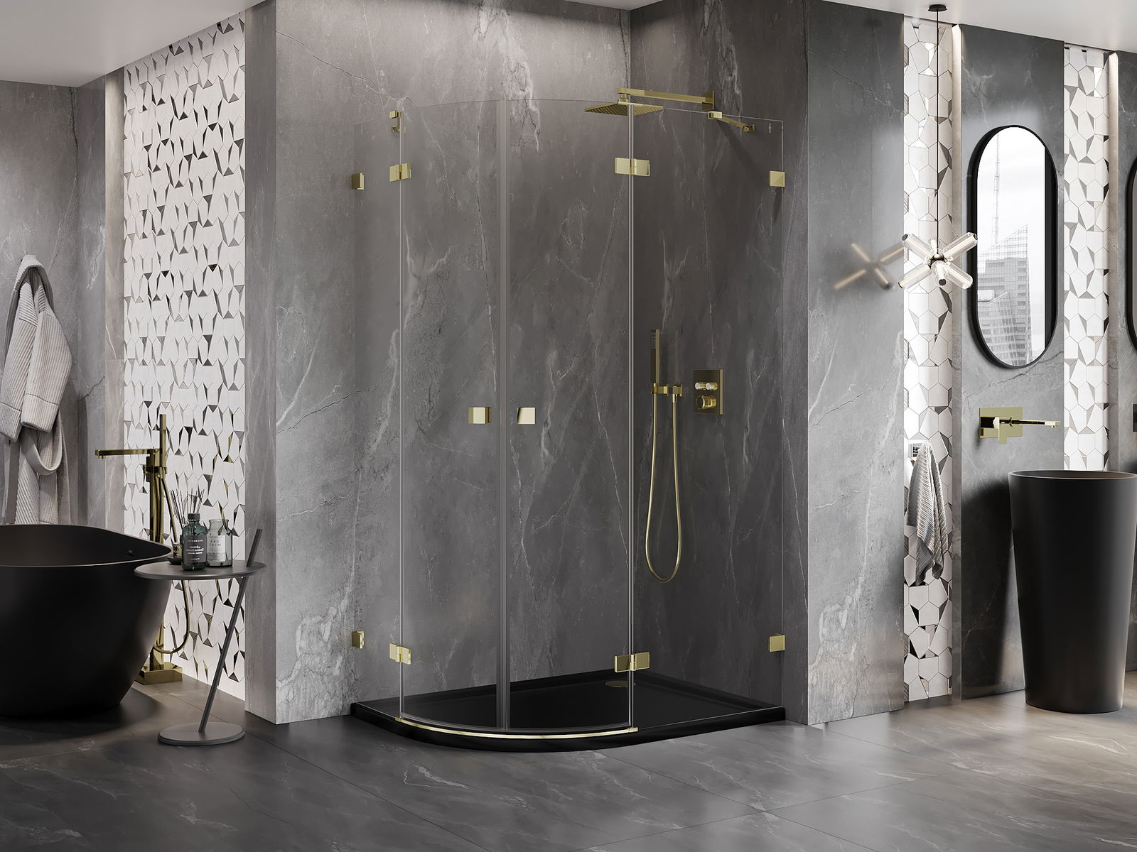 L'impugnatura pratica e comoda è realizzata in metallo durevole e resistente. La forma alla moda combinata con una finitura abbinata al colore dei profili conferisce all'insieme un aspetto moderno e elegante, enfatizzando l'estetica di ogni bagno.